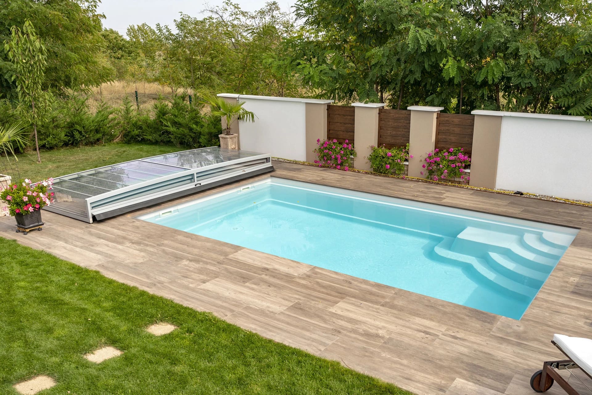 Olympia er et mellomstort glassfiberbasseng som er produsert i ett stykke med to integrerte trapper. Trappene er plassert i hvert hjørne på kortsiden, noe som betyr at bassengets fulle lengde kan brukes. Olympia er bygget med flere lag og er produsert med en keramisk kjerne som er en sentral del av veggkonstruksjonen, noe som gjør rammen ekstra stabil og slitesterk.