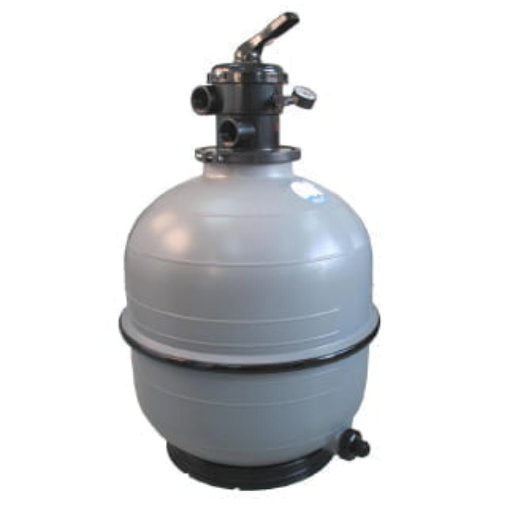 Sandfilteret Mediterranean i sprøytestøpt polypropylen finnes i tre størrelser og kan fås med både toppmontert og sidemontert ventil. Et sandfilter med toppmontert ventil tar ofte litt mindre plass i teknisk rom. Det er også noe enklere å installere. Fordelen med en sidemontert ventil er at du kan se inn i filteret.